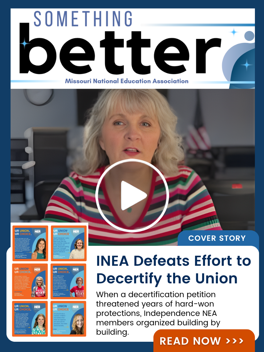 Something Better is MNEA’s digital magazine. Members can expect to receive this magazine three times per year, delivered to their home email addresses. MNEA features accomplishments and personal stories of members as well as issues affecting public school students and staff.