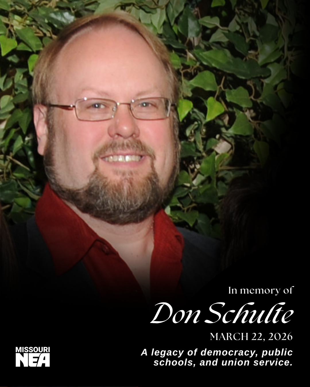 On Sunday, March 22, 2026, longtime Missouri NEA leader and former NEA Board member Don Schulte passed away. Don lived by a simple creed, captured in the email address he chose for himself: “NEA4me.” To Don, our union was never just an organization; it was democracy in action and the way educators in Missouri turn our voices into power.