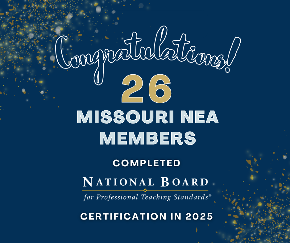 Research consistently shows that National Board Certified Teachers (NBCTs) strengthen instructional quality, elevate student achievement, and contribute to positive school culture. By investing in this gold standard of professional learning, MNEA members help drive ongoing improvement in Missouri’s public schools and reinforce the value of highly skilled, well-supported educators in every classroom.