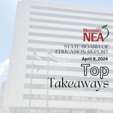 MNEA believes that every student and educator deserves the best experience possible in schools. That is why we are the only educational organization that is consistently present at every meeting of DESE, the state board of education, and the Missouri Legislature. We are your eyes and ears where decisions are being made about your schools when you cannot be.