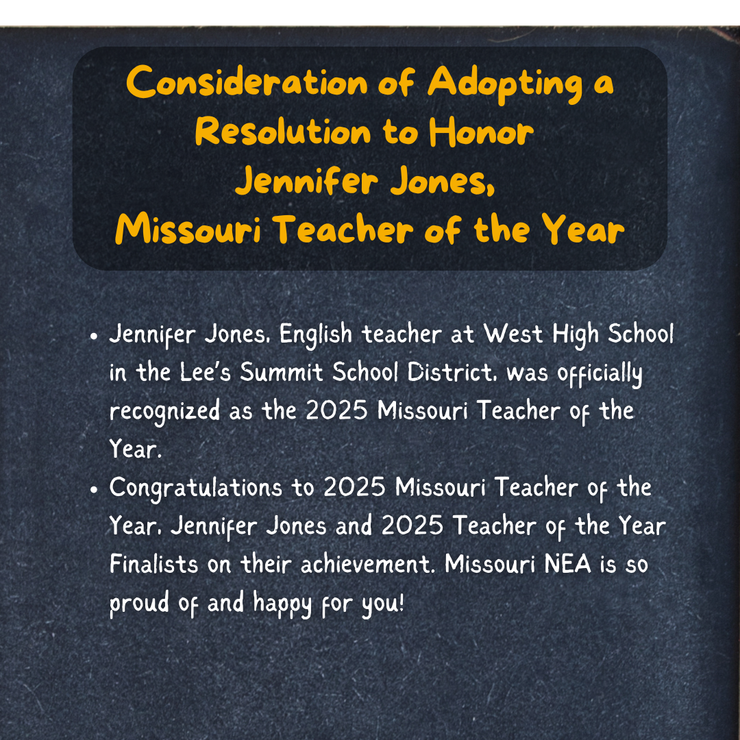 Congratulations to 2025 Missouri Teacher of the Year, Jennifer Jones, and 2025 Teacher of the Year Finalists on their achievements. Missouri NEA is so proud of and happy for you!